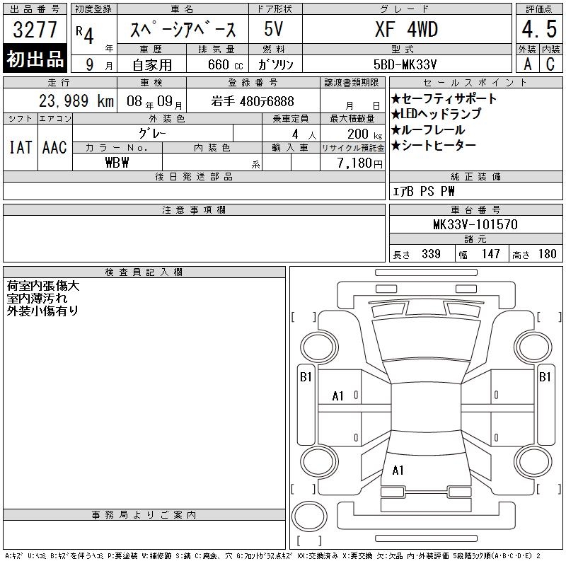 SUZUKI SPACIA BACE XF 4WD - лот 3277