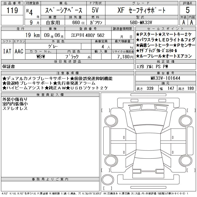 SUZUKI SPACIA BACE XF SAFETY SUPPORT - лот 119