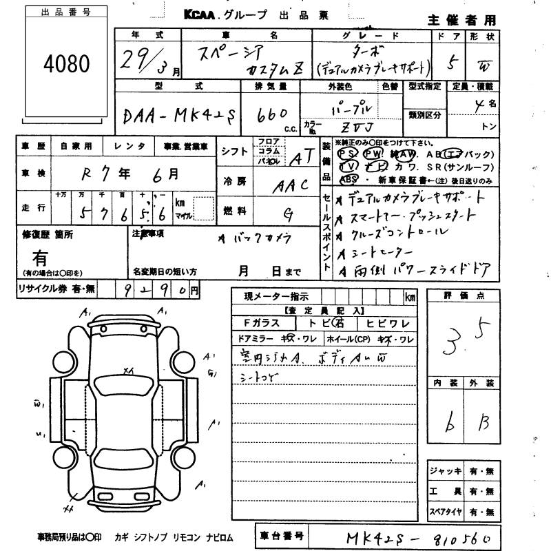 SUZUKI SPACIA CUSTOM - лот 4080