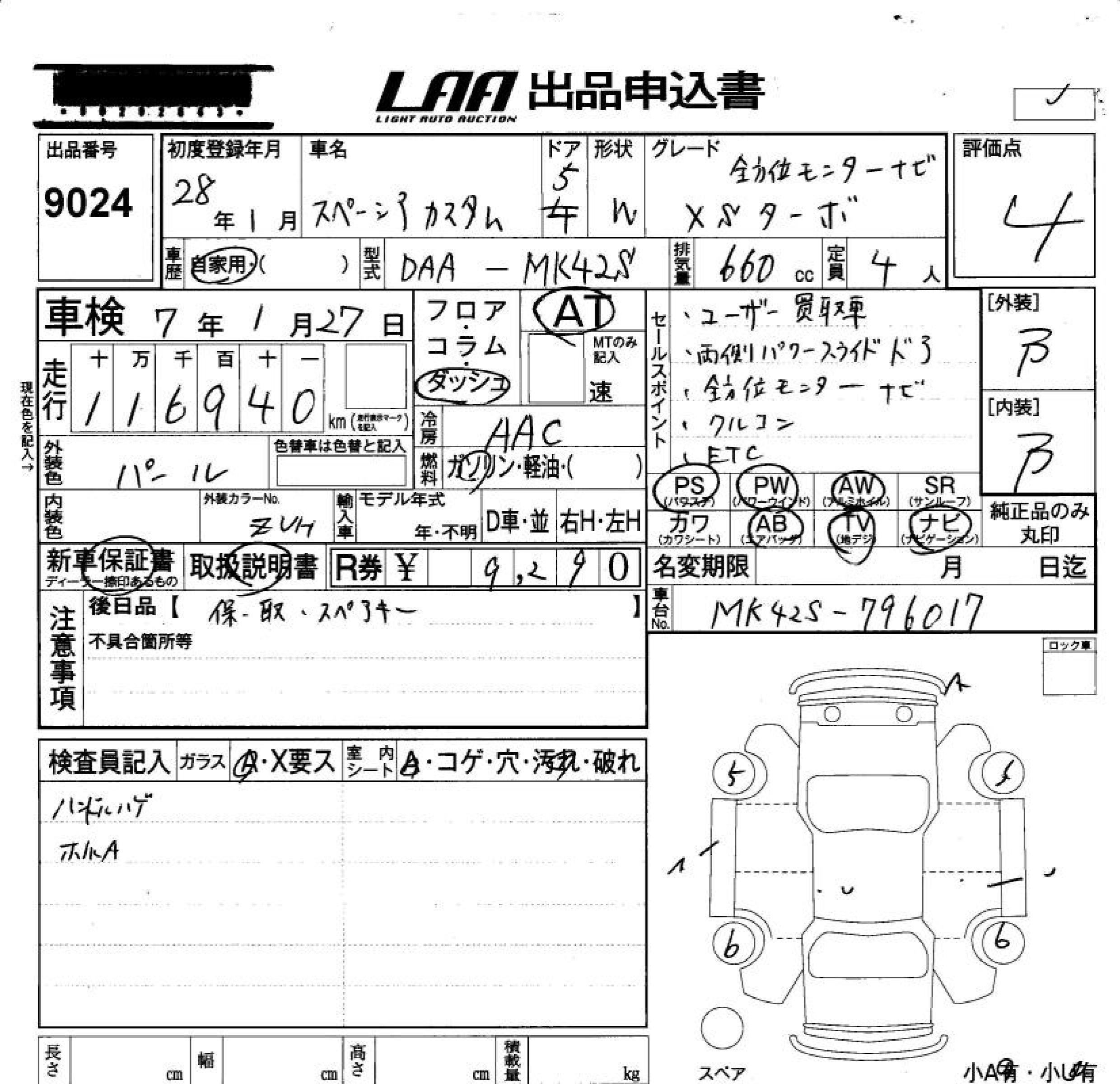 SUZUKI SPACIA CUSTOM - лот 9024