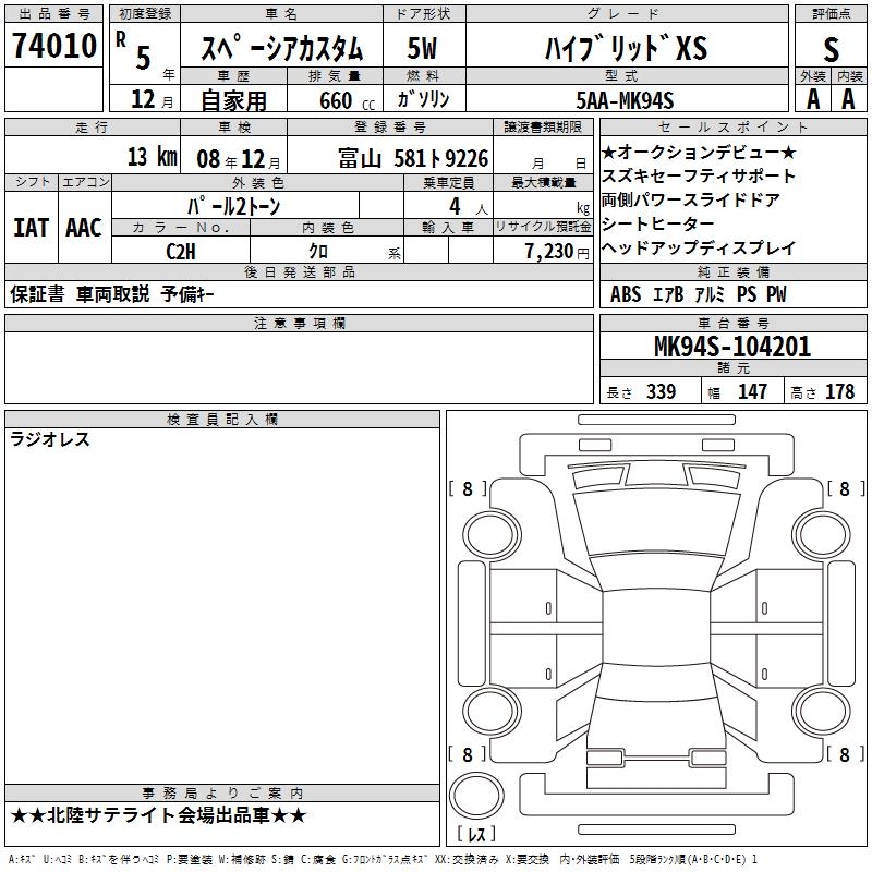SUZUKI SPACIA CUSTOM - лот 74010