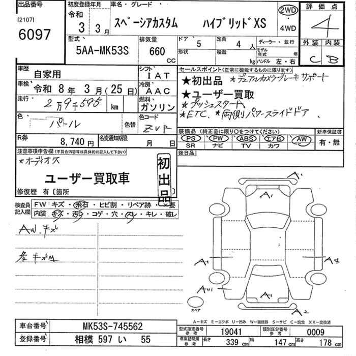 SUZUKI SPACIA CUSTOM HYBRID XS - лот 6097