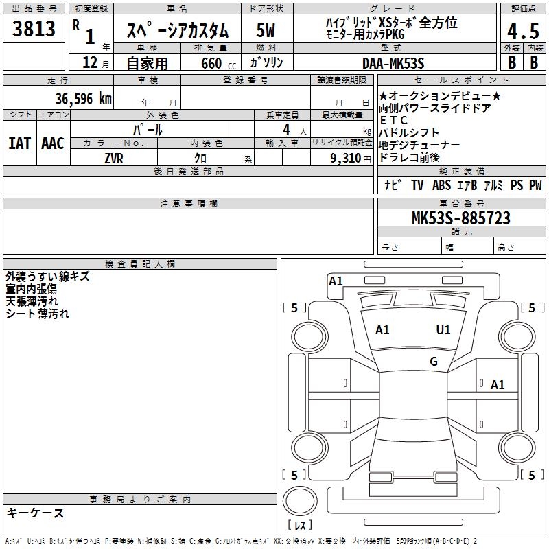 SUZUKI SPACIA CUSTOM HYBRID XS TURBO ZEN HOWE I - лот 3813