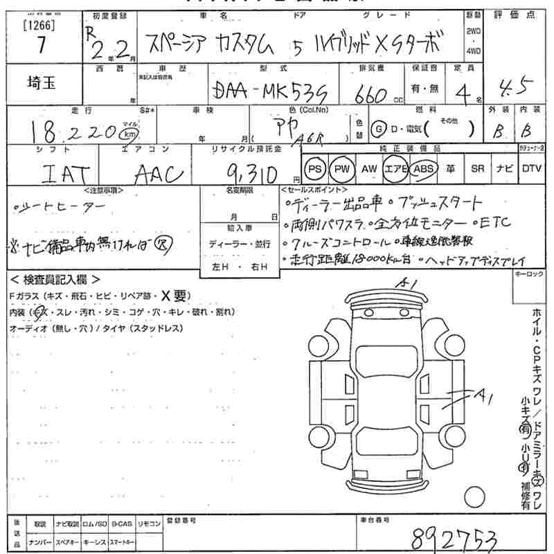 SUZUKI SPACIA CUSTOM HYBRID XS TURBO - лот 7
