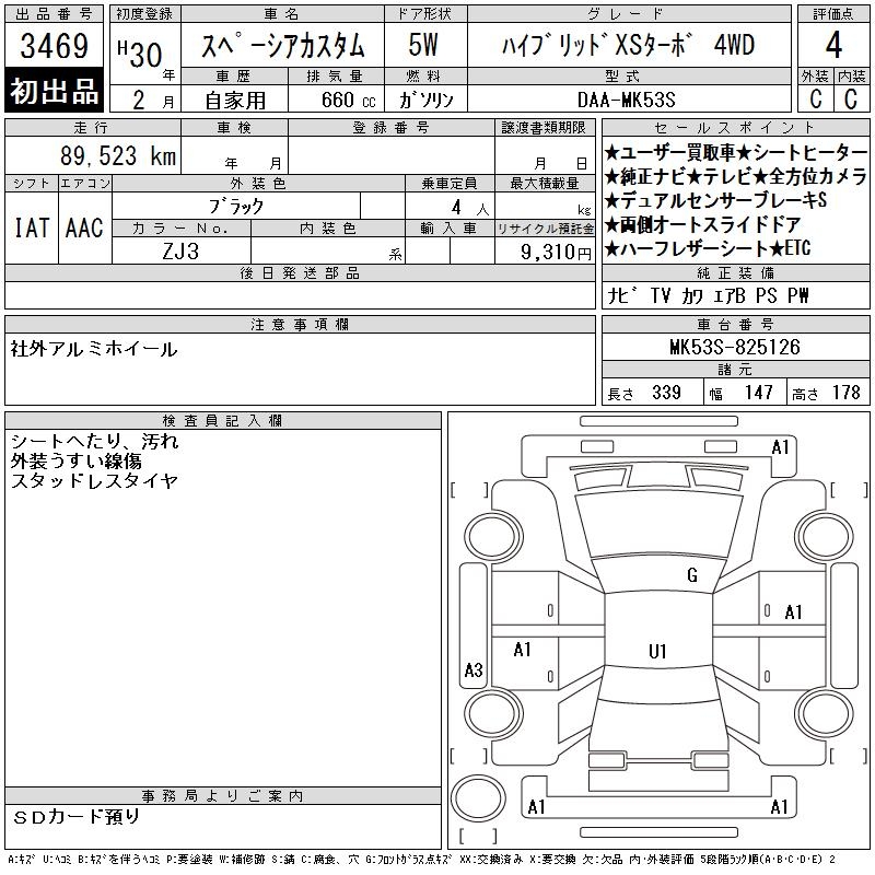 SUZUKI SPACIA CUSTOM HYBRID XS TURBO 4WD - лот 3469