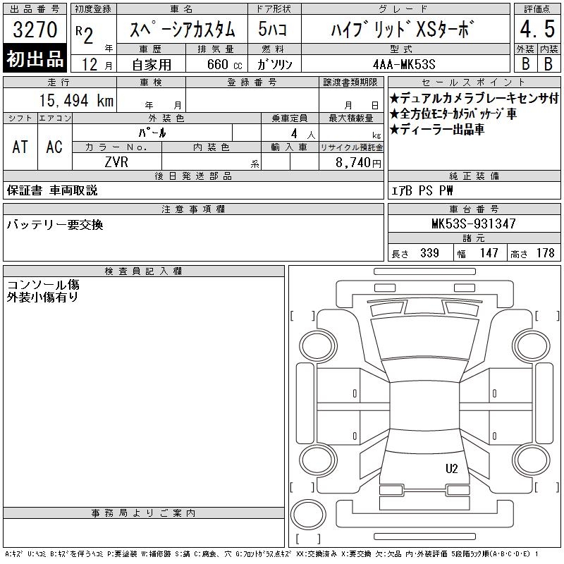 SUZUKI SPACIA CUSTOM HYBRID XS TURBO - лот 3270