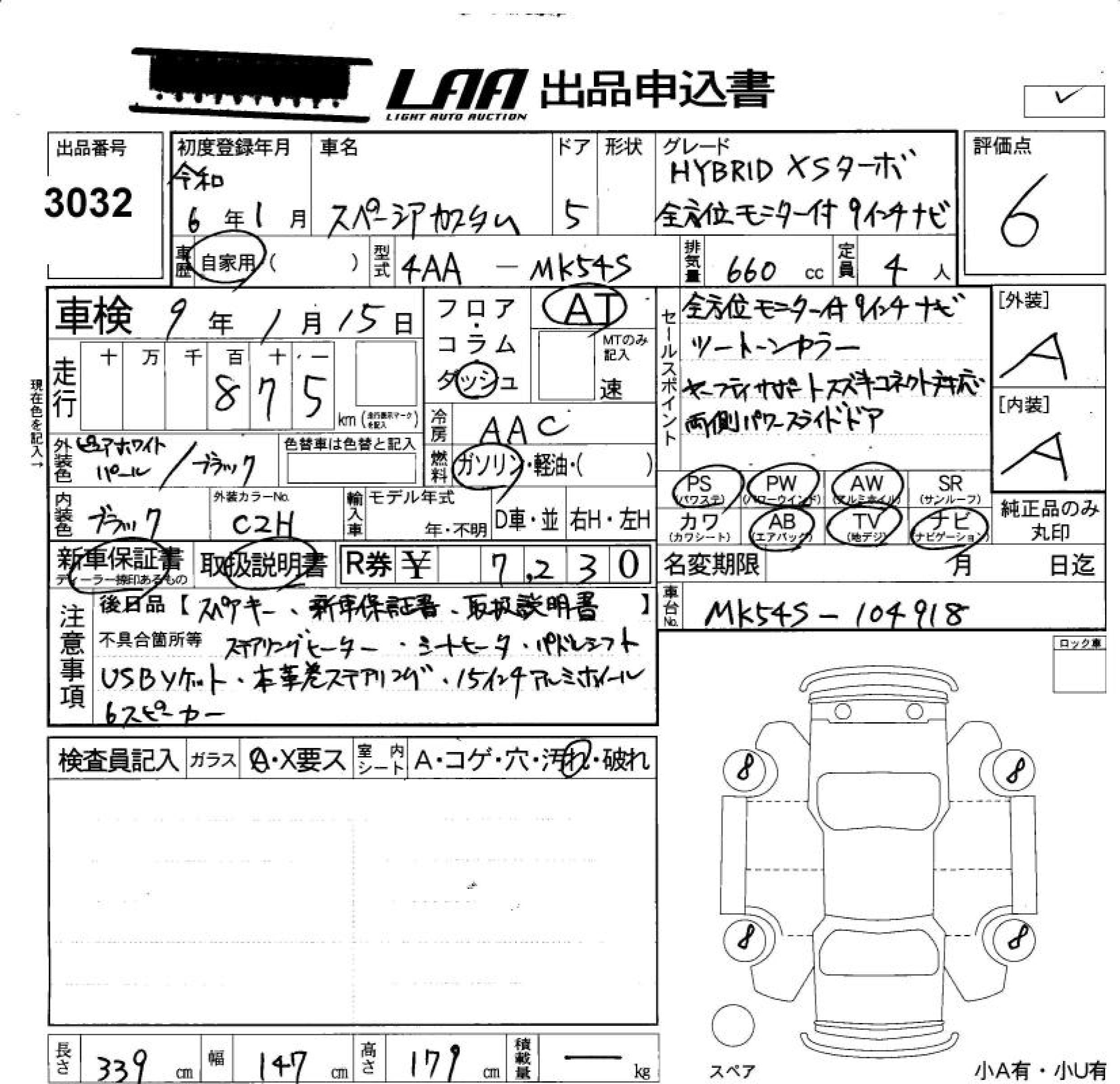 SUZUKI SPACIA CUSTOM HYBRID XS TURBO ALL PERSON . - лот 3032
