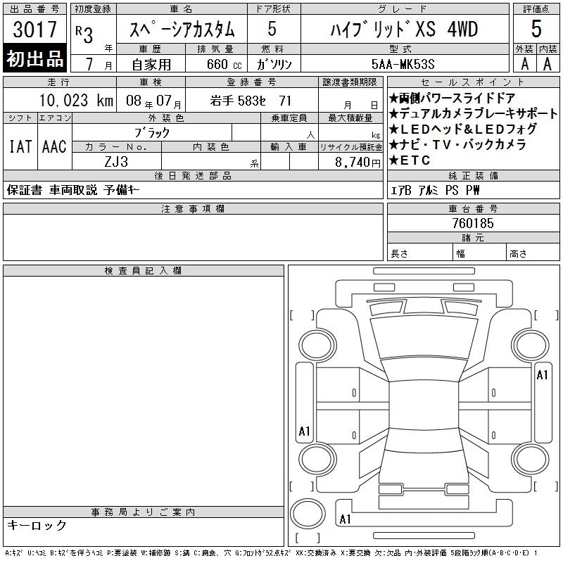 SUZUKI SPACIA CUSTOM HYBRID XS 4WD - лот 3017