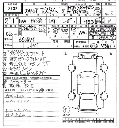 SUZUKI SPACIA CUSTOM 4WD XS SAFETY -SA HO - лот 3132