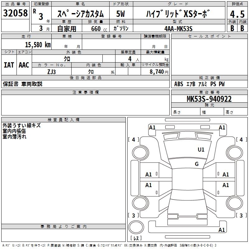 SUZUKI SPACIA CUSTOM HYBRID XS TURBO - лот 32058