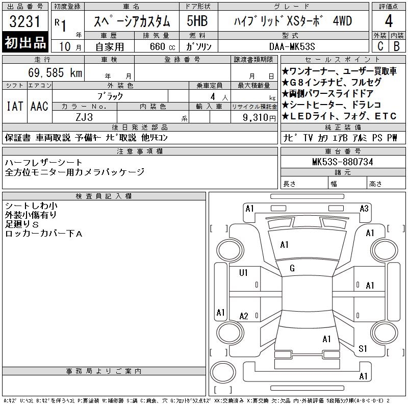 SUZUKI SPACIA CUSTOM HYBRID XS TURBO 4WD - лот 3231