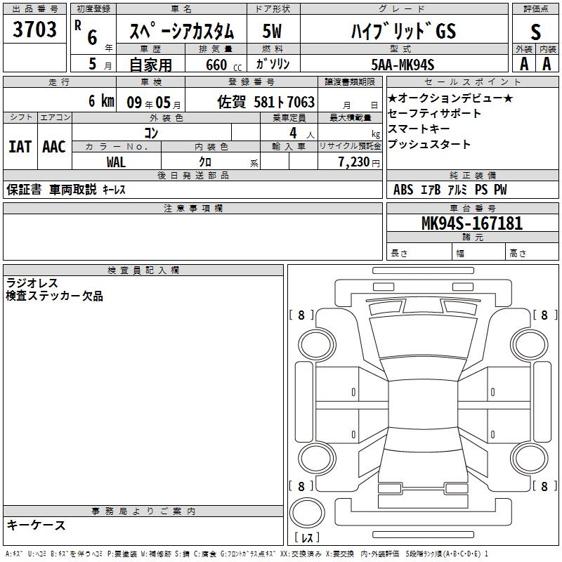 SUZUKI SPACIA CUSTOM HYBRID GS - лот 3703
