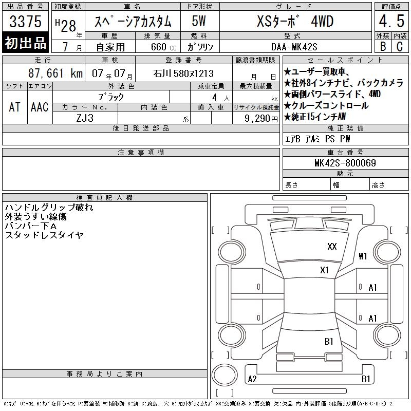 SUZUKI SPACIA CUSTOM XS TURBO 4WD - лот 3375