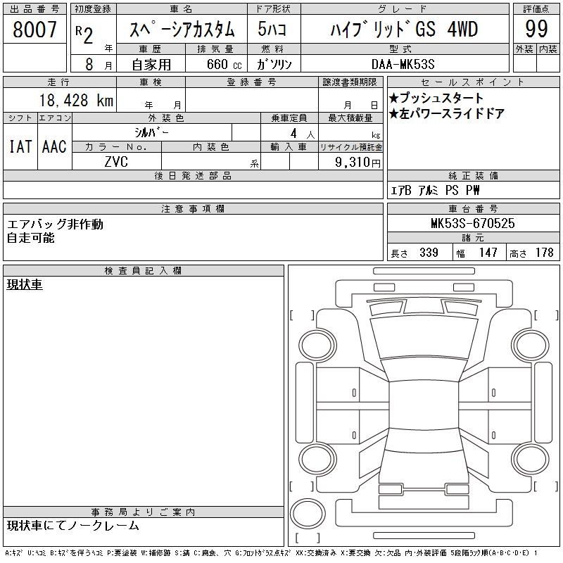 SUZUKI SPACIA CUSTOM HYBRID GS 4WD - лот 8007