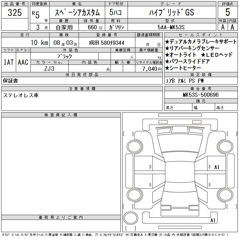 SUZUKI SPACIA CUSTOM HYBRID GS - лот 325
