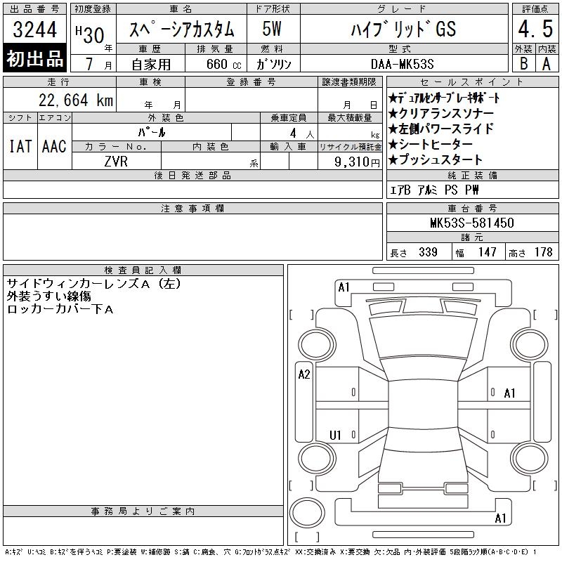 SUZUKI SPACIA CUSTOM HYBRID GS - лот 3244
