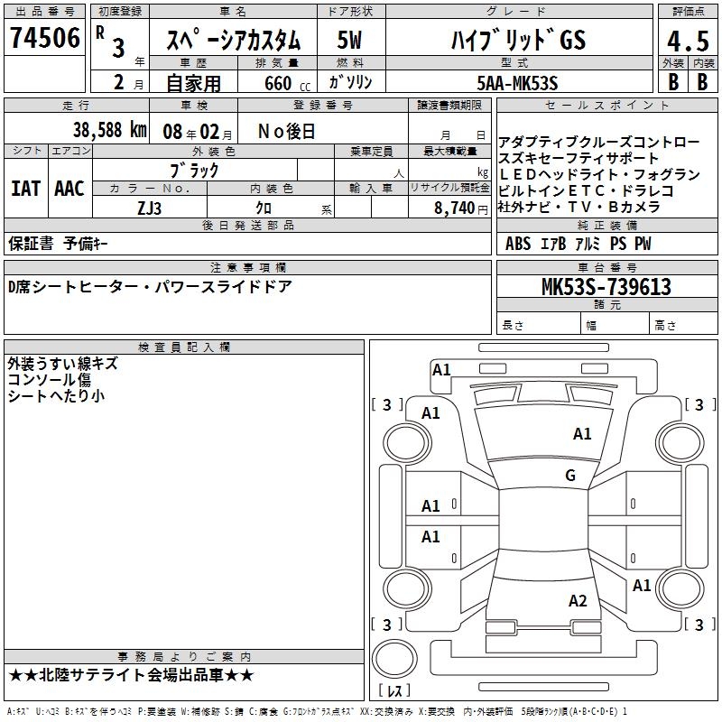 SUZUKI SPACIA CUSTOM HYBRID GS - лот 74506