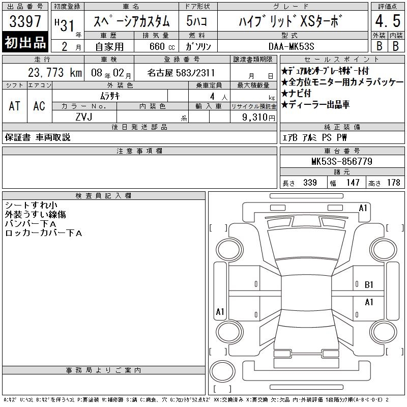 SUZUKI SPACIA CUSTOM HYBRID XS TURBO - лот 3397