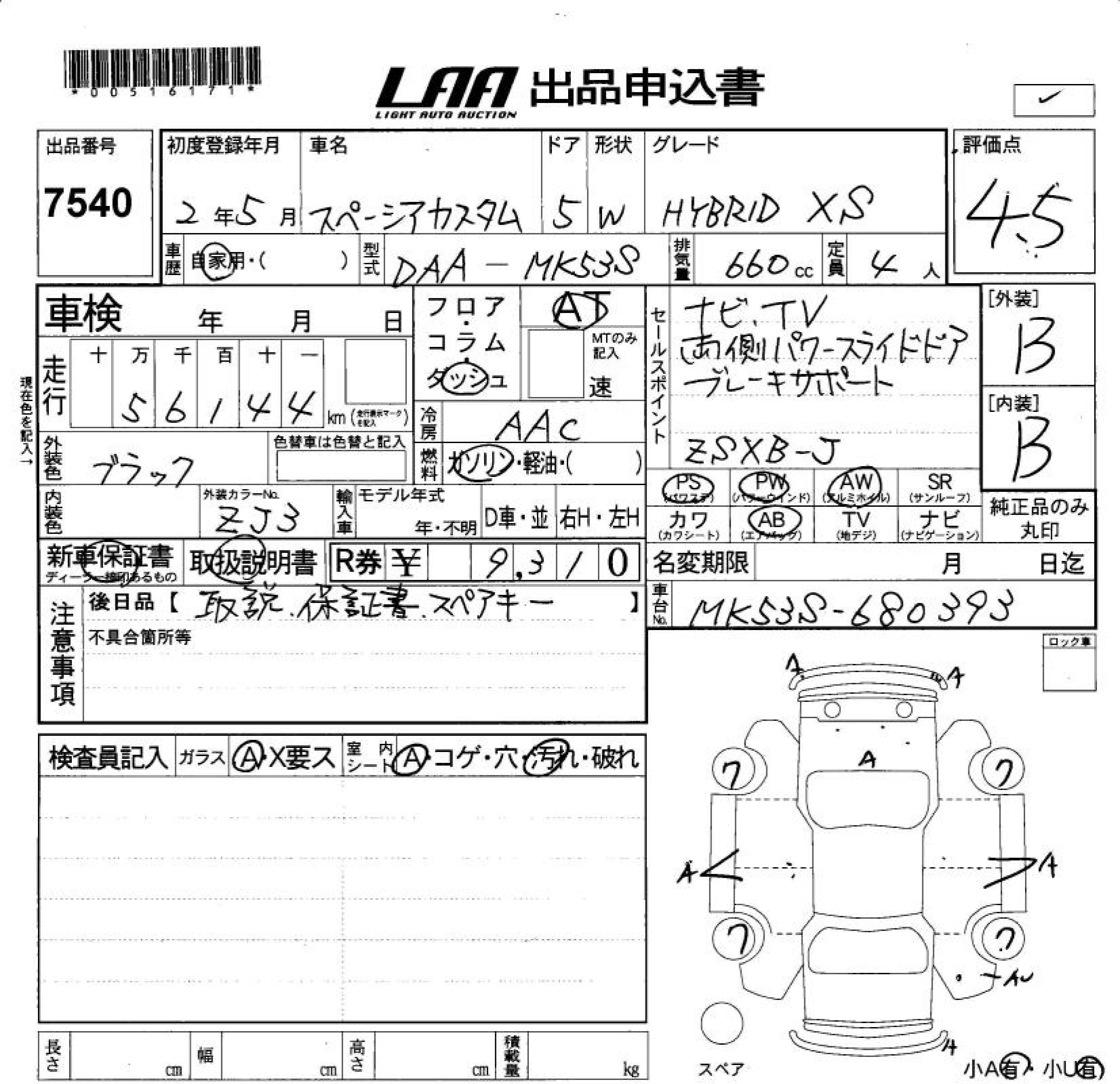 SUZUKI SPACIA CUSTOM HYBRID XS - лот 7540