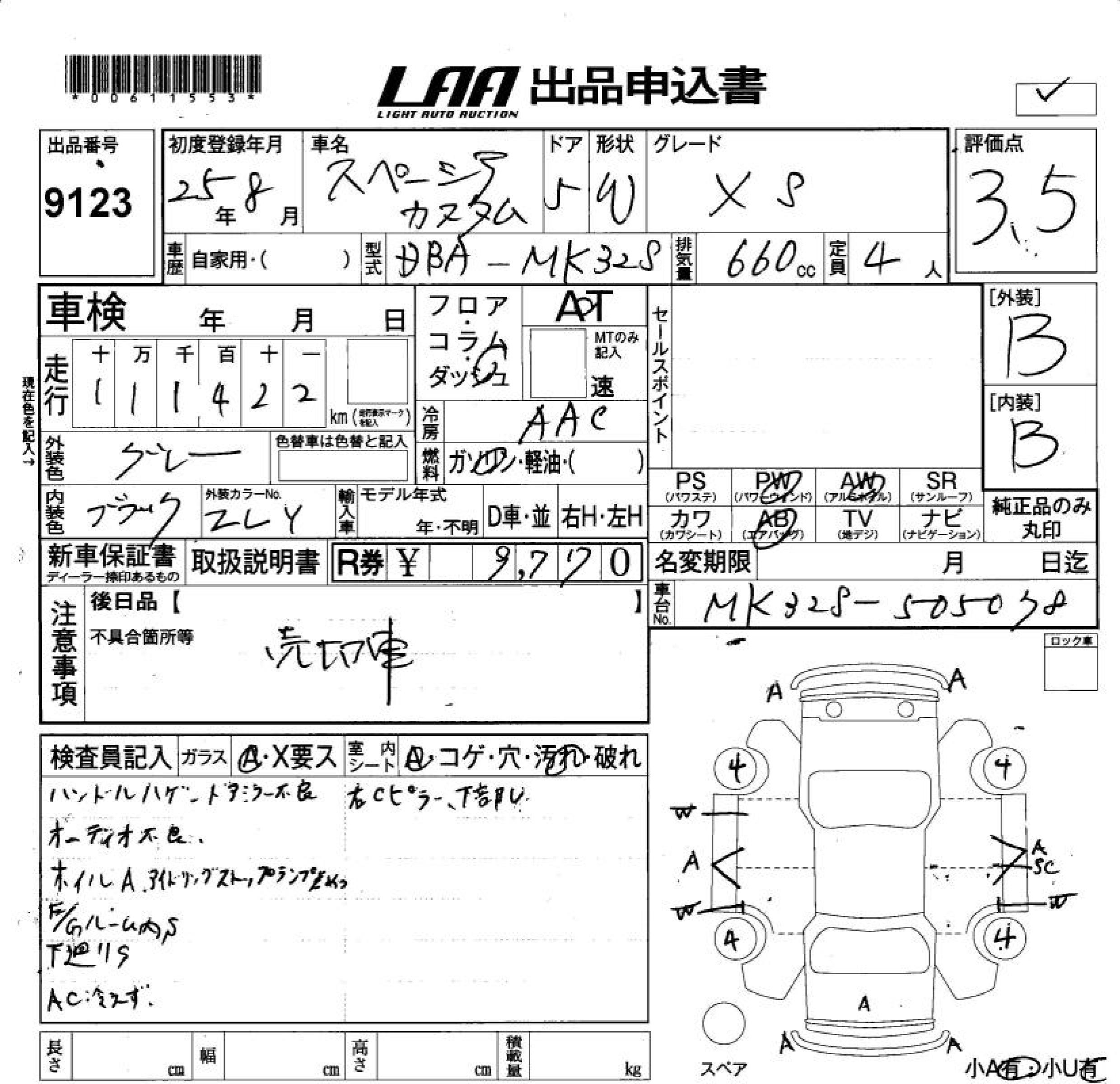 SUZUKI SPACIA CUSTOM XS - лот 9123