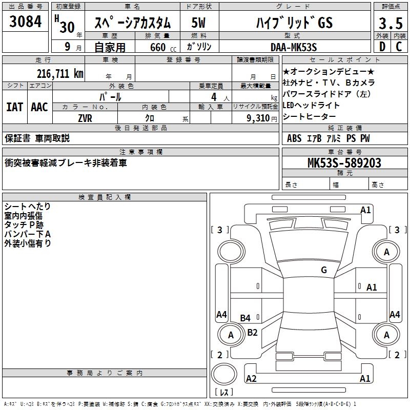 SUZUKI SPACIA CUSTOM HYBRID GS - лот 3084
