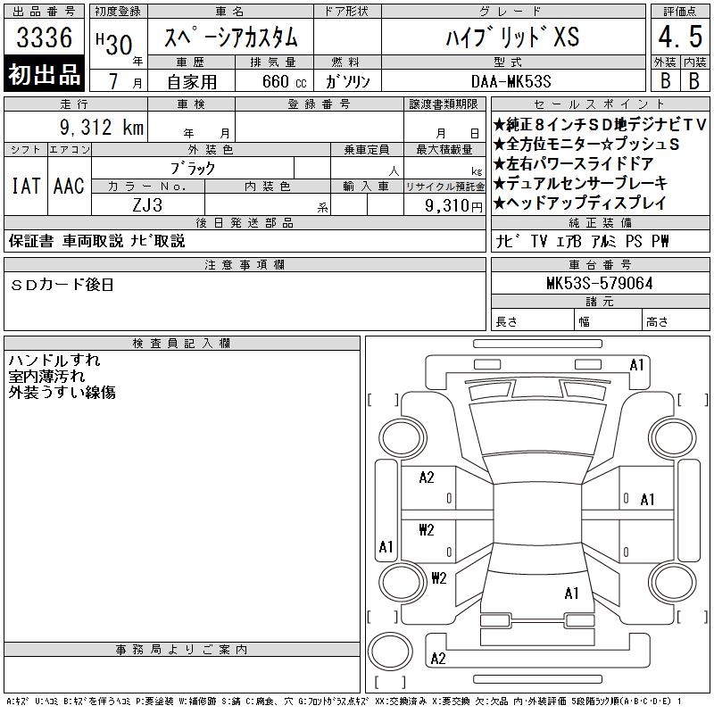 SUZUKI SPACIA CUSTOM HYBRID XS - лот 3336