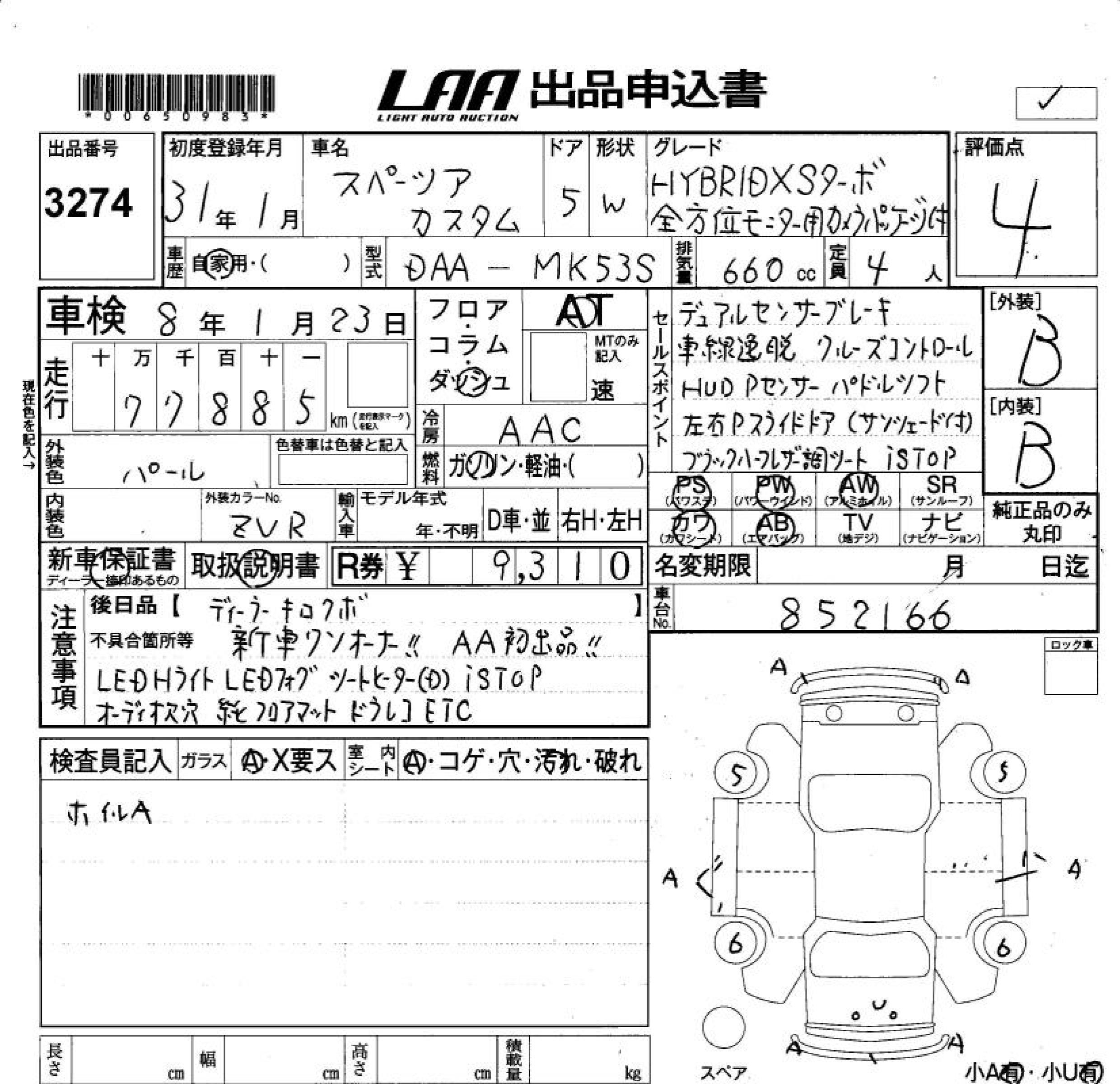SUZUKI SPACIA CUSTOM HYBRID XS TURBO ALL PERSON . - лот 3274