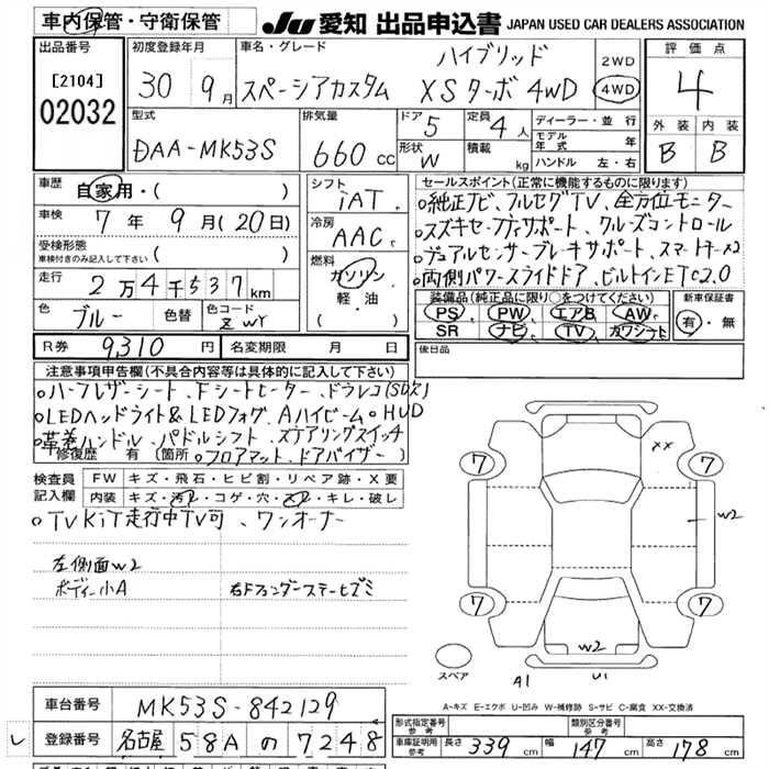 SUZUKI SPACIA CUSTOM HYBRID XS TURBO 4WD - лот 2032