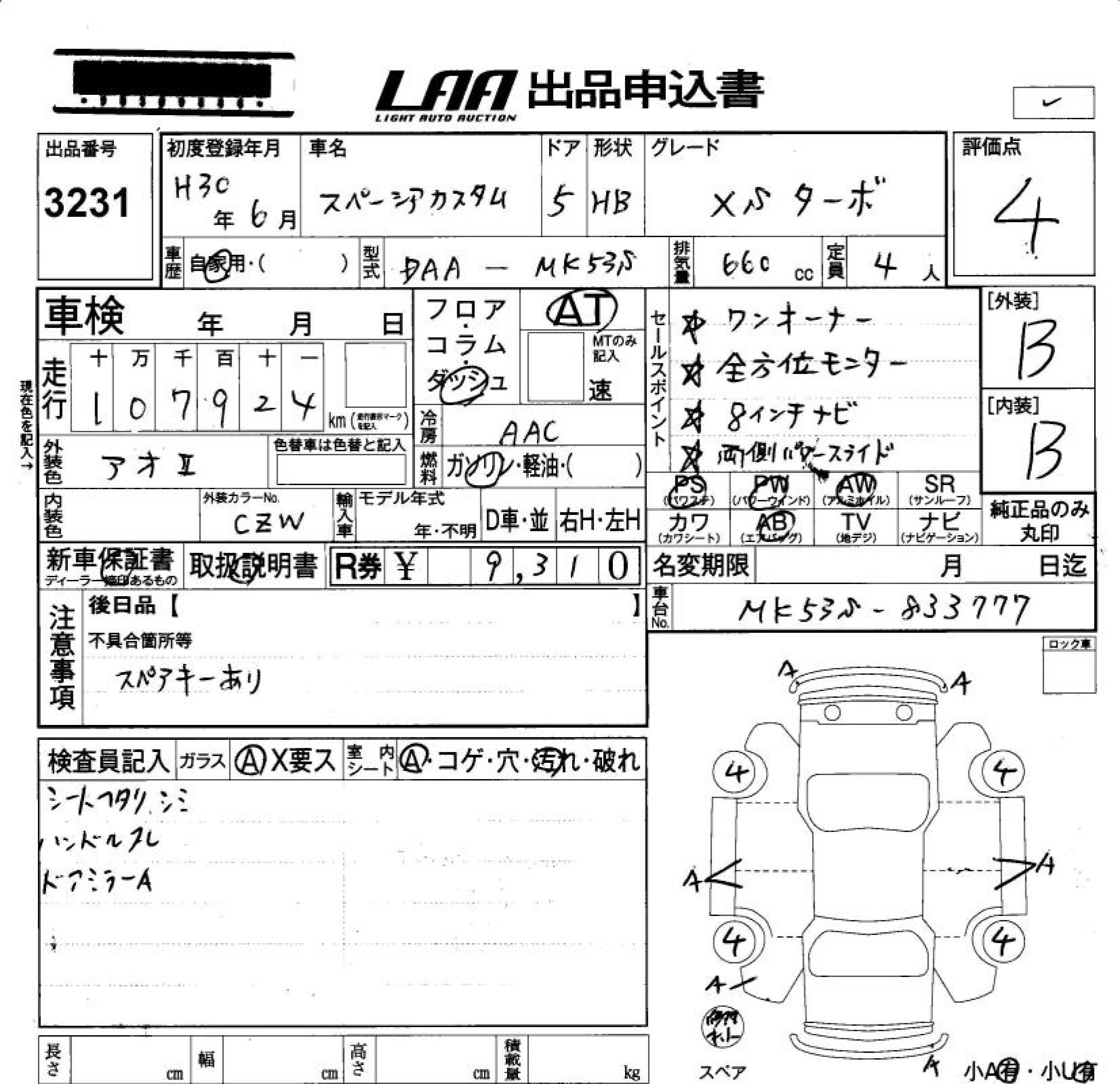 SUZUKI SPACIA CUSTOM HYBRID XS TURBO - лот 3231