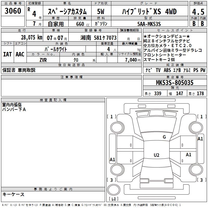 SUZUKI SPACIA CUSTOM HYBRID XS 4WD - лот 3060