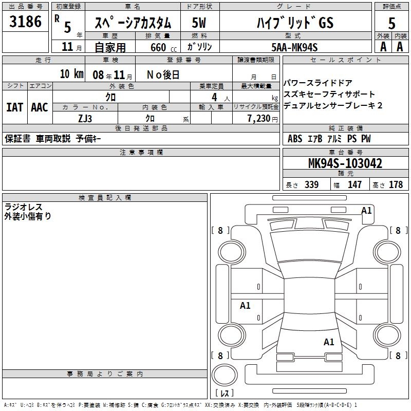 SUZUKI SPACIA CUSTOM HYBRID GS - лот 3186