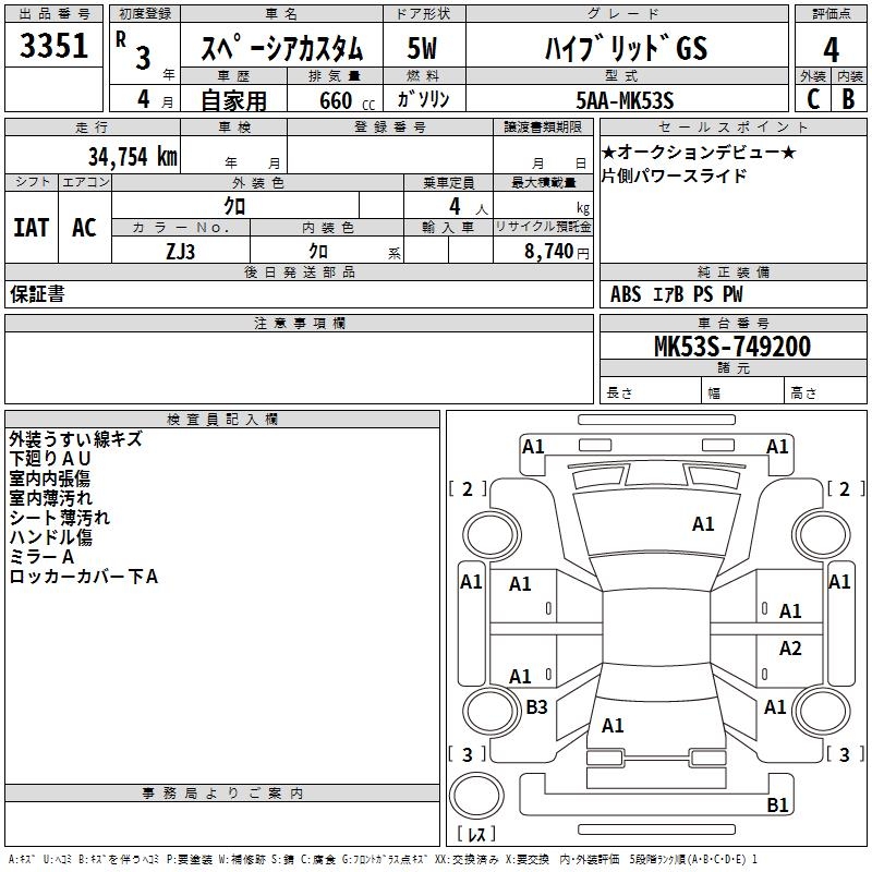 SUZUKI SPACIA CUSTOM HYBRID GS - лот 3351