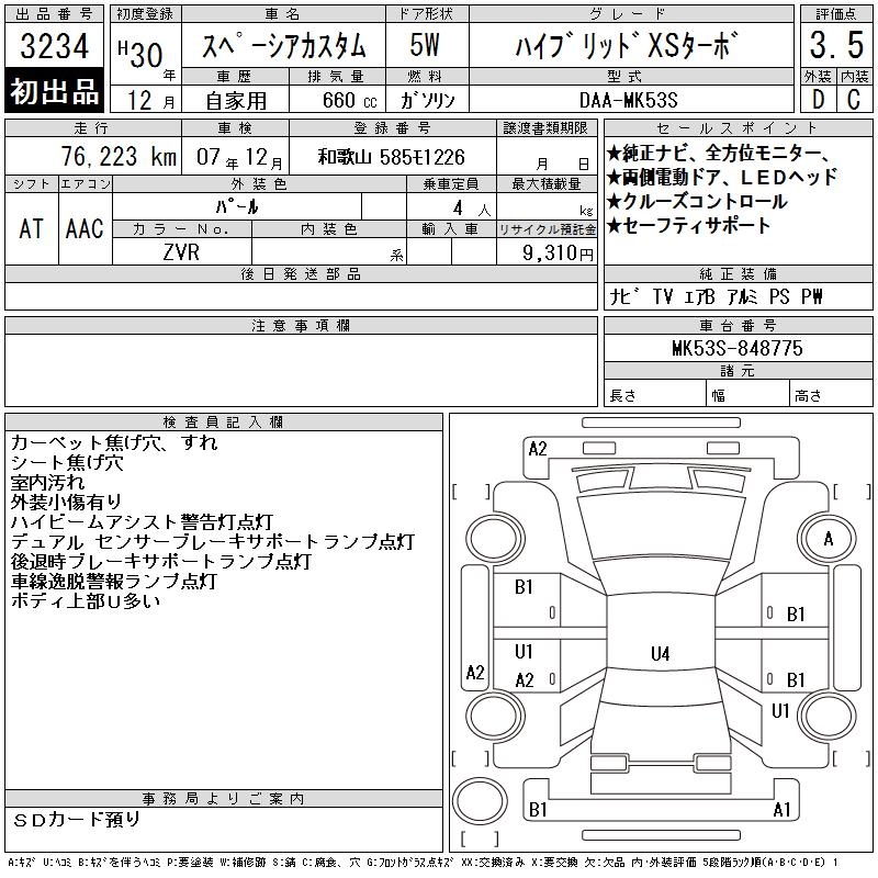 SUZUKI SPACIA CUSTOM HYBRID XS TURBO - лот 3234