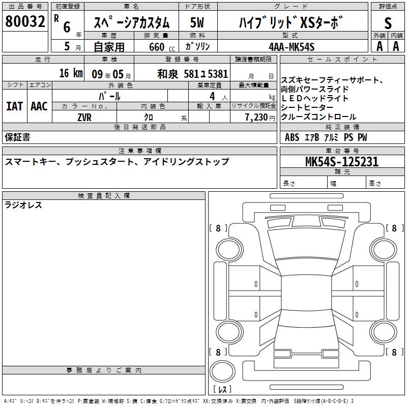 SUZUKI SPACIA CUSTOM HYBRID XS TURBO - лот 80032