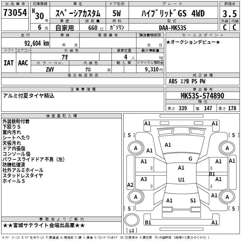 SUZUKI SPACIA CUSTOM HYBRID GS 4WD - лот 73054