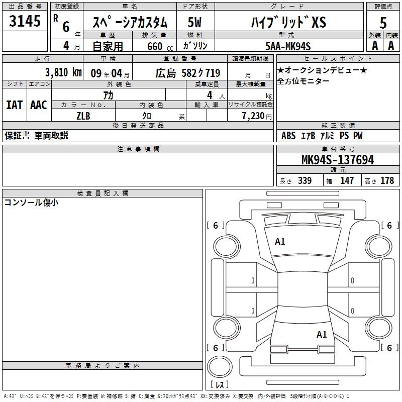 SUZUKI SPACIA CUSTOM HYBRID XS - лот 3145