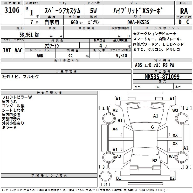 SUZUKI SPACIA CUSTOM HYBRID XS TURBO - лот 3106