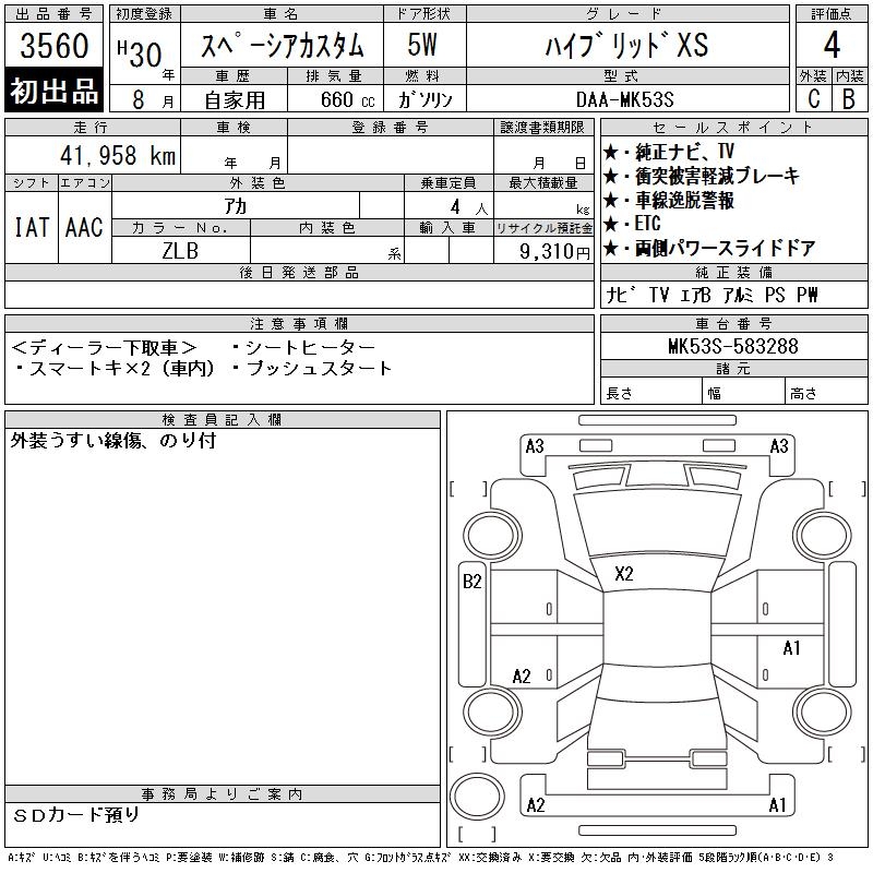 SUZUKI SPACIA CUSTOM HYBRID XS - лот 3560
