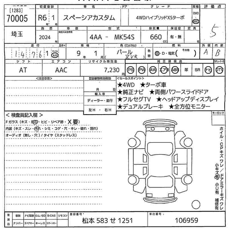 SUZUKI SPACIA CUSTOM 4WD HYBRID XS TURBO - лот 70005