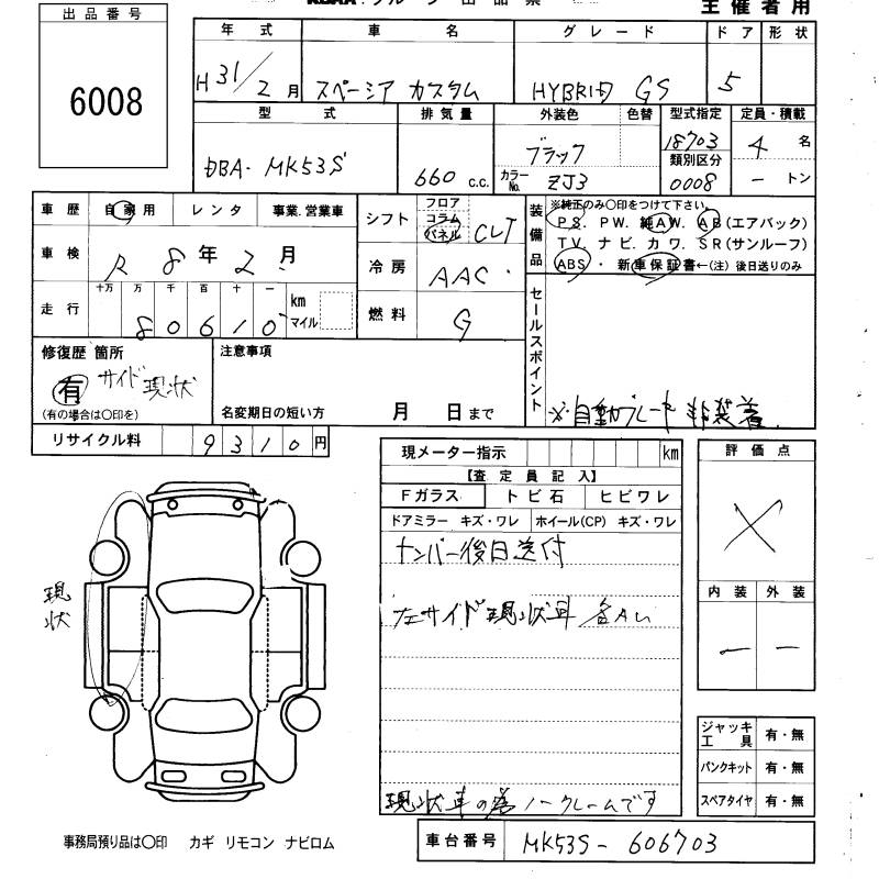 SUZUKI SPACIA CUSTOM HYBRID GS - лот 6008