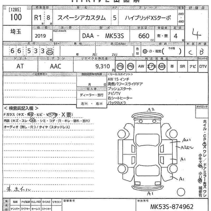 SUZUKI SPACIA CUSTOM HYBRID XS TURBO - лот 100