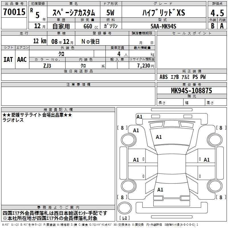 SUZUKI SPACIA CUSTOM HYBRID XS - лот 70015
