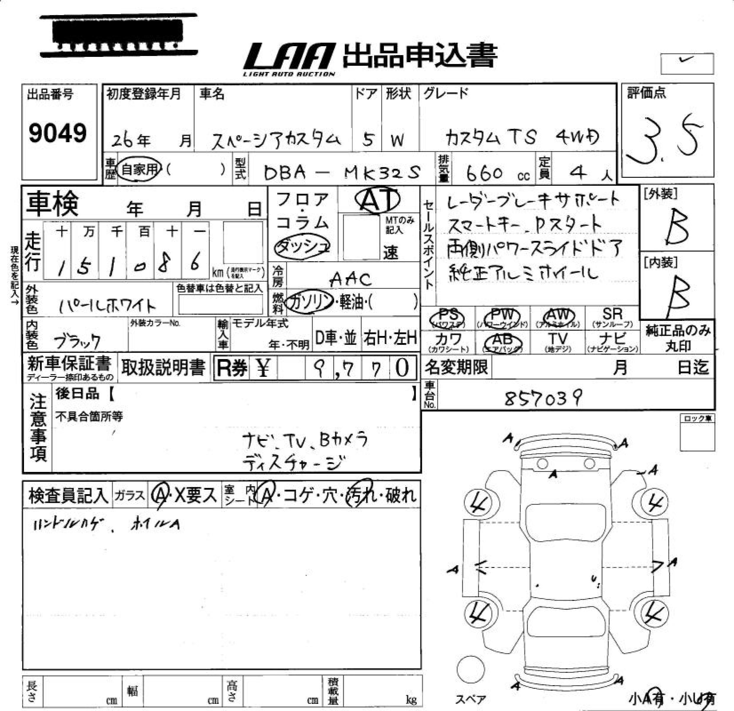 SUZUKI SPACIA CUSTOM CUSTOM TS 4WD - лот 9049
