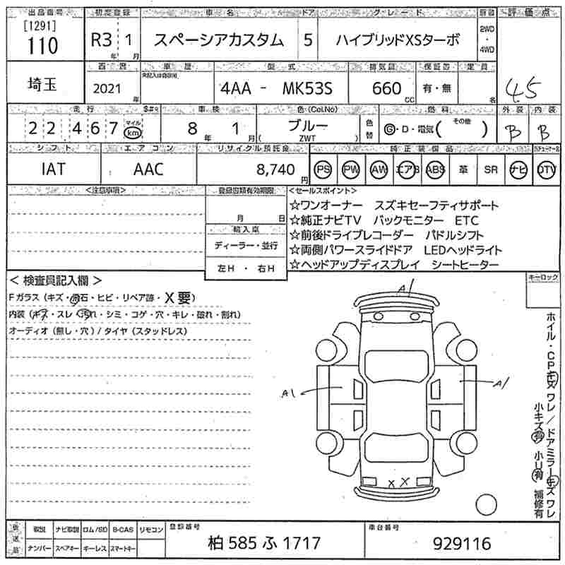 SUZUKI SPACIA CUSTOM HYBRID XS TURBO - лот 110