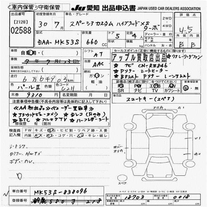 SUZUKI SPACIA CUSTOM HYBRID XS TURBO - лот 2588