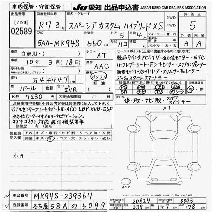 SUZUKI SPACIA CUSTOM HYBRID XS - лот 2589