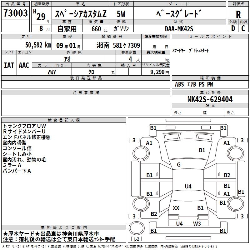 SUZUKI SPACIA CUSTOM BASE GRADE - лот 73003