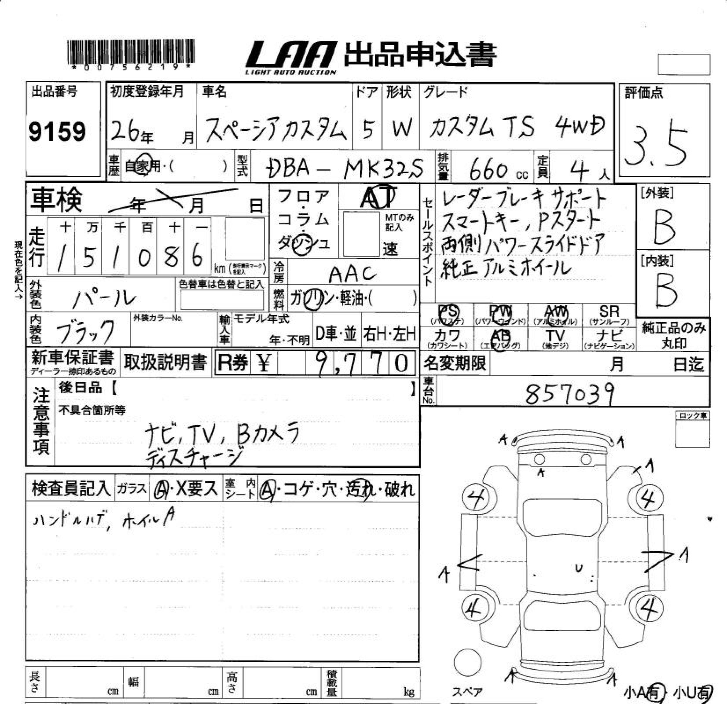 SUZUKI SPACIA CUSTOM TS 4WD - лот 9159