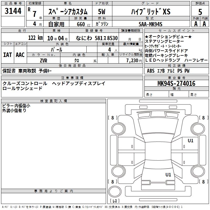 SUZUKI SPACIA CUSTOM HYBRID XS - лот 3144