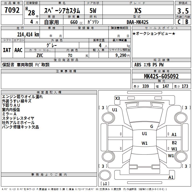 SUZUKI SPACIA CUSTOM XS - лот 7092
